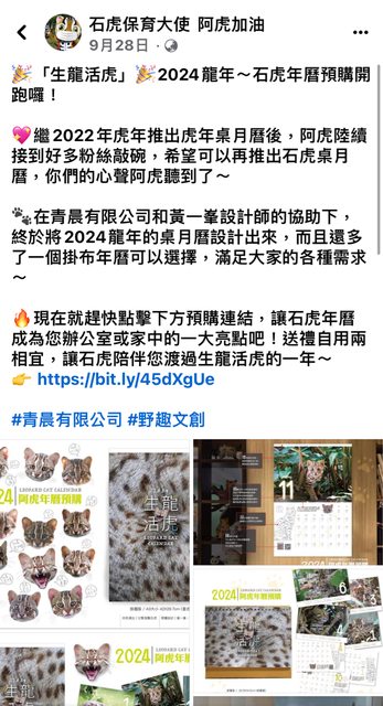 標題[廣宣] 只到今天! 2024石虎保育公益桌曆月曆年