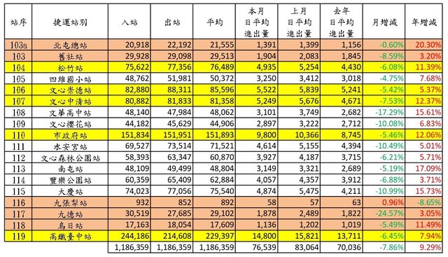 5、本文參考 Sunny821210、TaiwanXDman板友高雄捷運各站旅運量的發文格式。