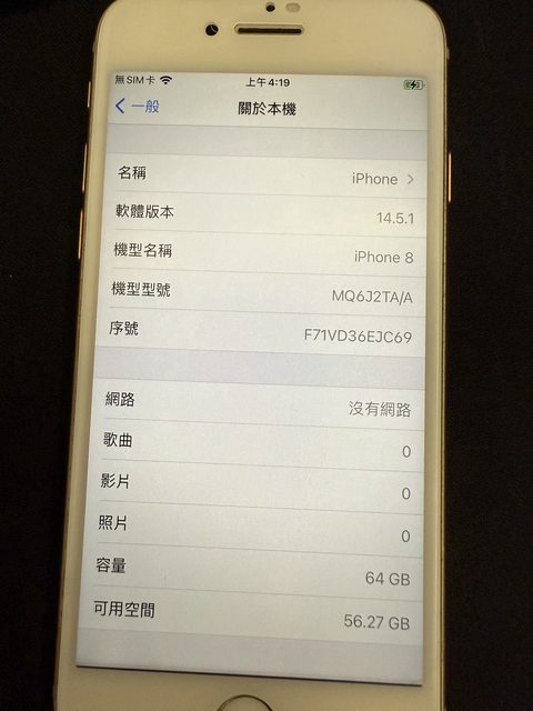 iPhone 8 64G 玫瑰金 電池健康度87% 售2000元 (已售出)
