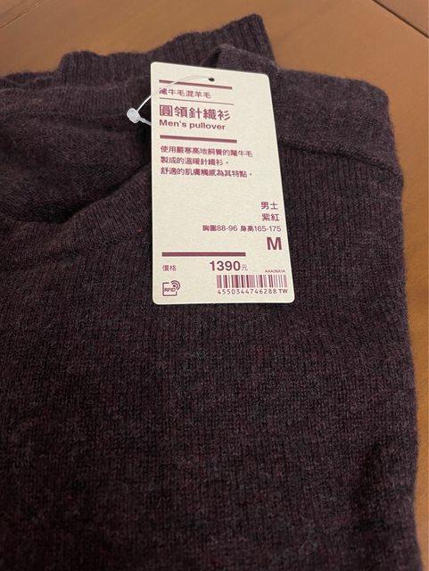 3.全新無印良品M號男圓領針織衫350元