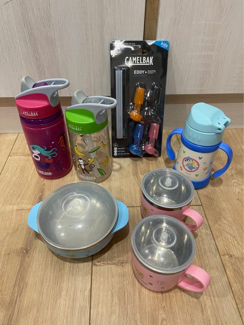 最左邊是車用的。 6. 物品名稱:兒童水壺、餐具 物品說明:一手,有使用痕跡,請看圖片現況。 物品實照: