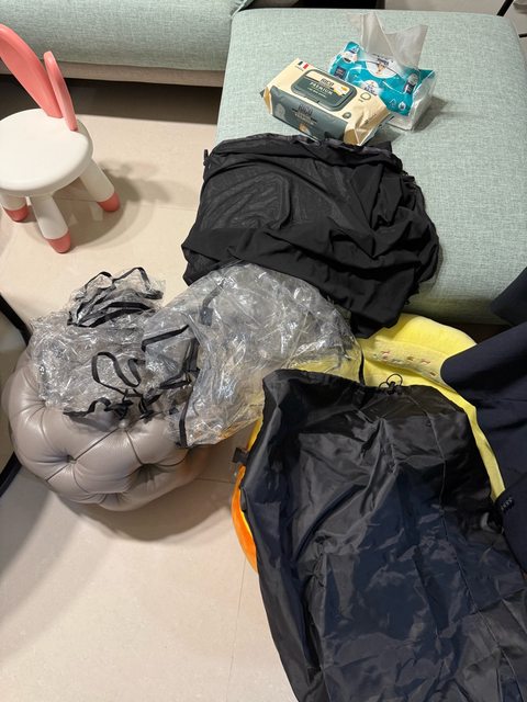 附上非原廠收納袋、兩組雨罩、杯架及蚊帳