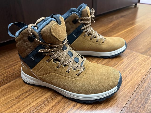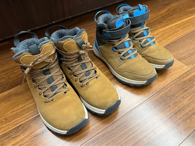 兩雙鞋不是滑雪靴,但在雪地行走沒問題,保暖防水。也都是為了去雪地特別買來旅行時