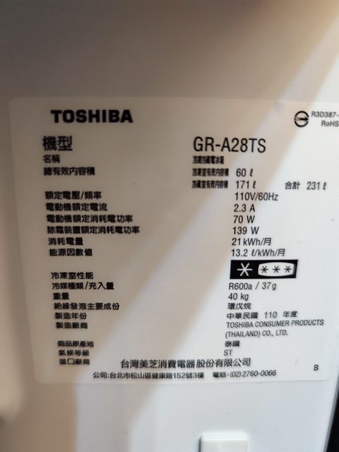 標題[交易] 東區 冰箱 Toshiba gr_a28ts 231L