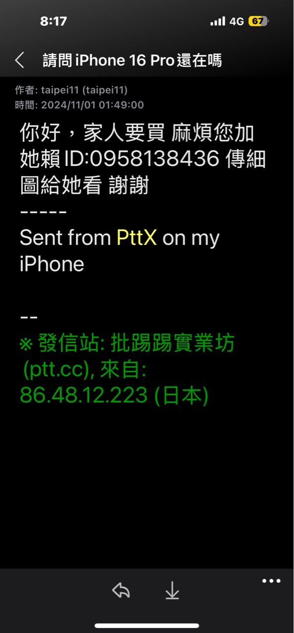 推 newgrand: 這個人也有私信我,要跟我交易,留的lin 1.168.11.204 11/01 18:37