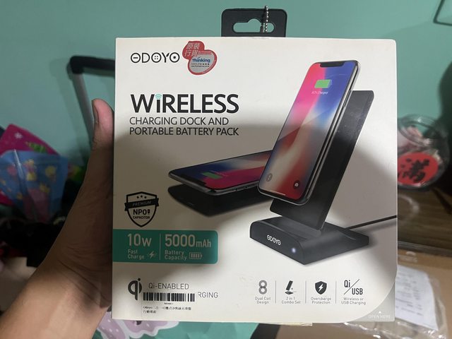 9.二合一可攜式無線充電盤行動電源/300