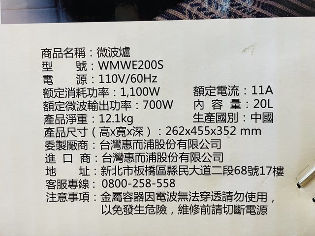 標題[交易] 惠而浦 20L微電腦微波爐(WMWE200S)含運送