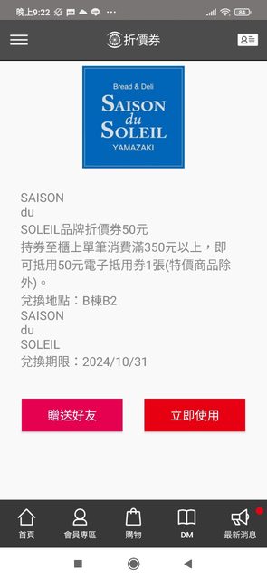 中友app抽到的優惠券