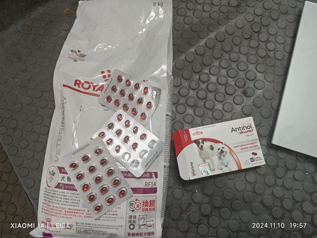 物品:腎狗飼料(皇家RF14)+安適得40顆