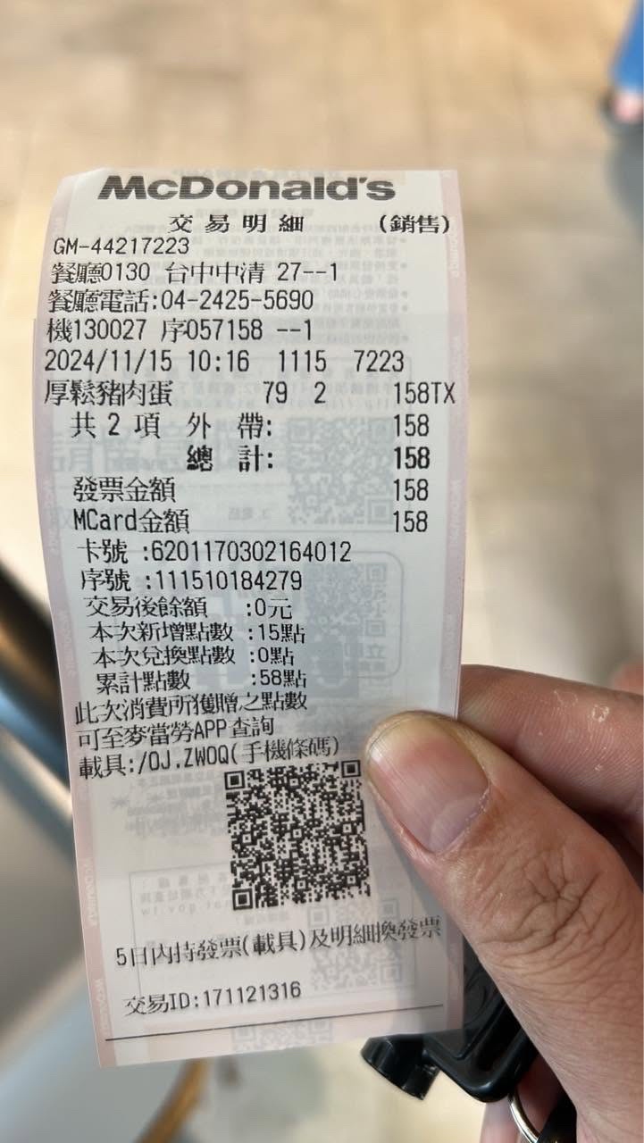 yohinon: 我在中清路上近北平路的麥當勞,連買到二 111.83.33.165 11/15 20:26