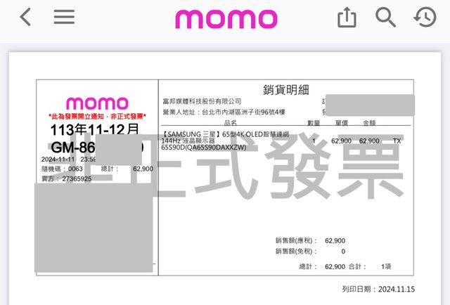轉讓項目: 【SAMSUNG 三星】65型4K OLED智慧連網 144Hz 液晶顯示器 65S90D(QA65S90DAXXZW) 相關費用:62900購入,52000轉讓 https://i.imgur.com/SfV8tpD.jpeg