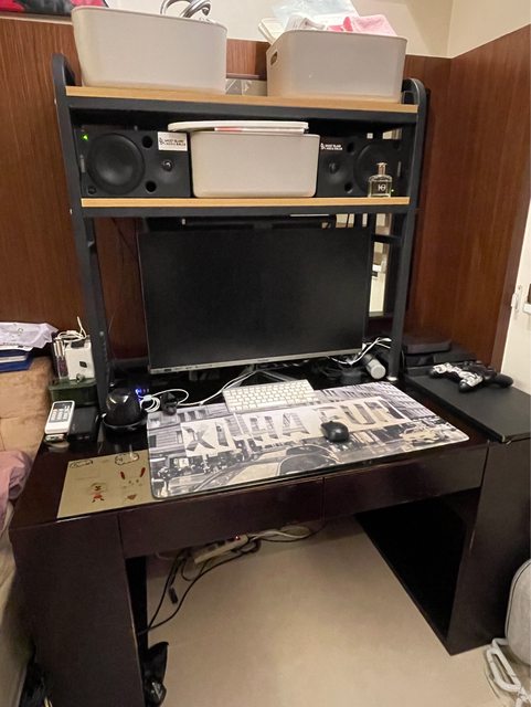 有使用痕跡,不影響正常使用,如照片桌面有附玻璃,因為是實木有一點重量,取件建議