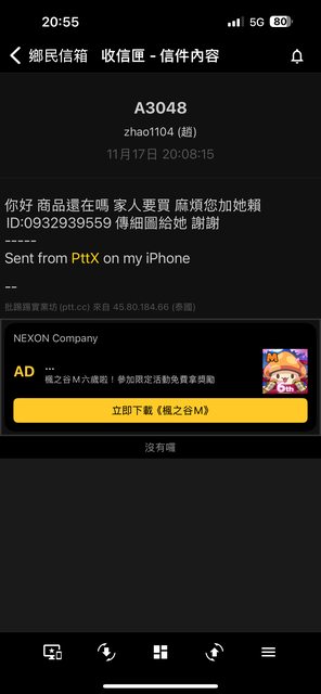 → iphone55566: 帳號而已61.224.11.72 11/17 21:03