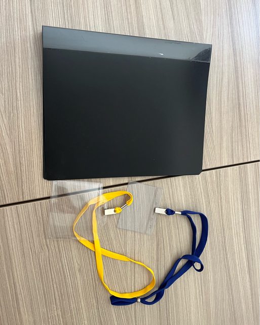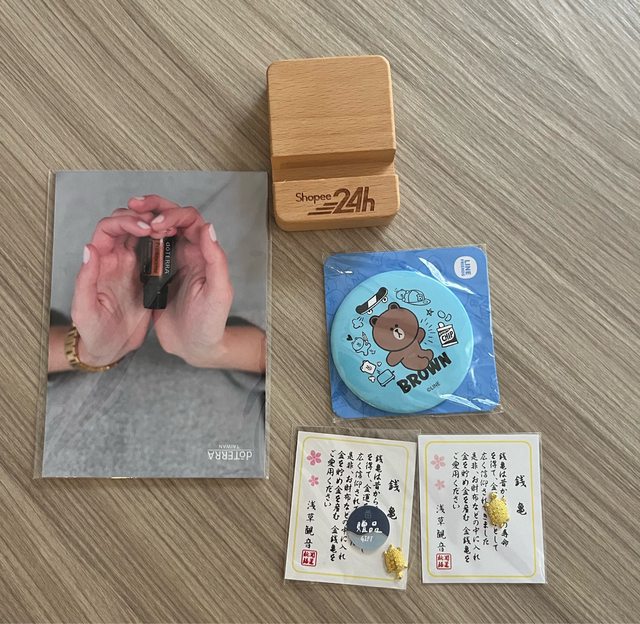 物品名稱:打孔文件夾、識別證掛帶數個、手機架、紀念別針、隨身鏡、全新明信片、演