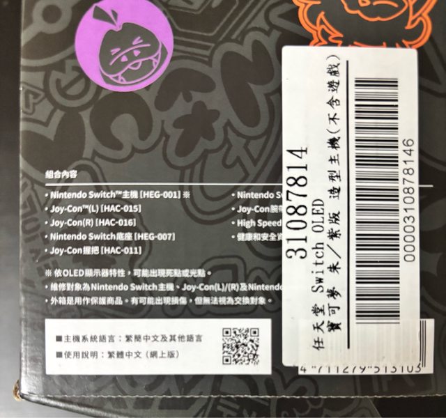 【品名】Switch Oled 朱紫版主機