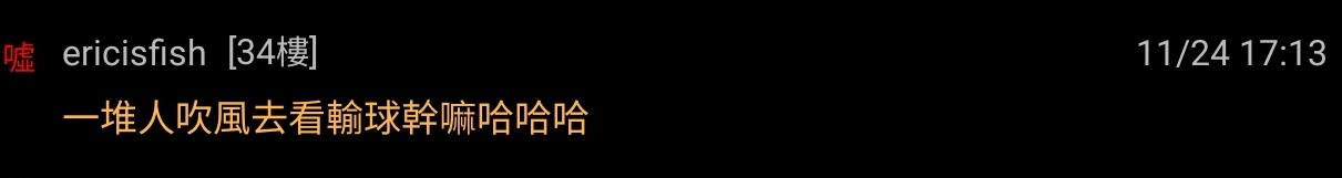 噓 ericisfish: 一堆人吹風去看輸球幹嘛哈哈哈 39.12.66.249 11/24 17:13