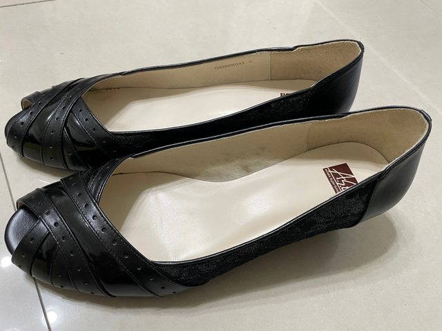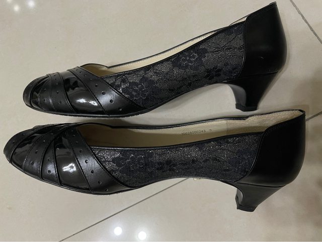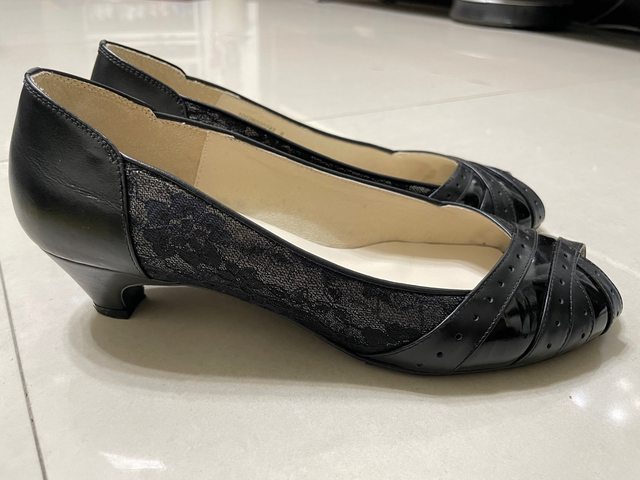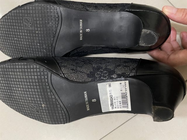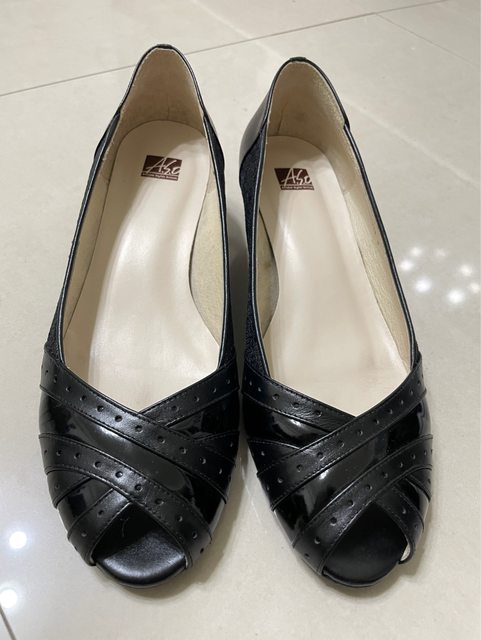 4.近全新但久放阿瘦真皮低跟魚口鞋(8號)300元(僅於室內試穿)