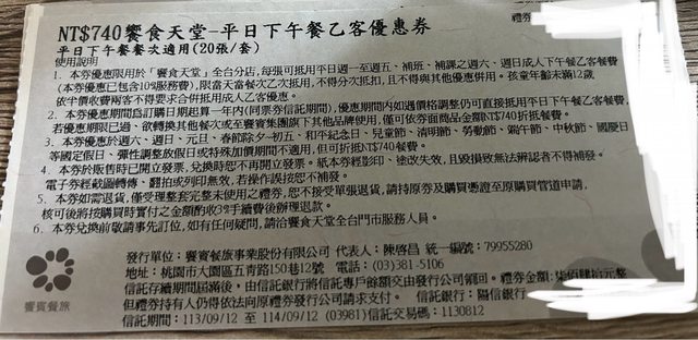 標題[交易] 售饗食天堂 平日下午餐券