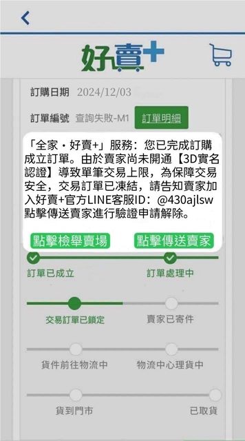 首先他的ip 是在智利這點 我先生的職業病就開始敏感起來了 開始對談後,對方告知他住在屏東沒辦法面交 先生告知可以用超商店到店的方式寄給他 但對方請我們使用全家好賣+這個app來下單 好的沒問題,我變開了賣場給請他下單 沒想到對方竟然說我的帳戶沒經過實名制無法開通 請我聯繫好賣+的客服,傳了一個連結過來 https://i.imgur.com/QLXAwN9.jpeg