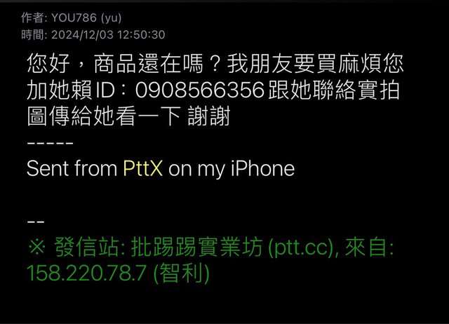 詐騙集團已經囂張到入侵版上肆虐了! 賣東西都會遇到詐騙真的太可惡了! 把經驗跟各位分享!請各位一定注意小心! 受惠於本版的方便,常在這賣東西 就在今日收到站內信說朋友要購買商品 因為我工作繁忙所以請先生處理與對方聯繫 https://i.imgur.com/wAZEwI9.jpeg