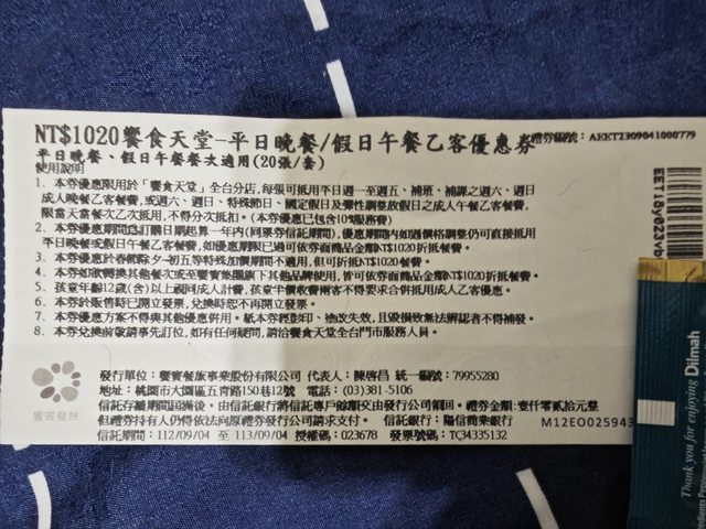 標題[交易] 饗食天堂_平日晚餐/假日午餐餐卷券