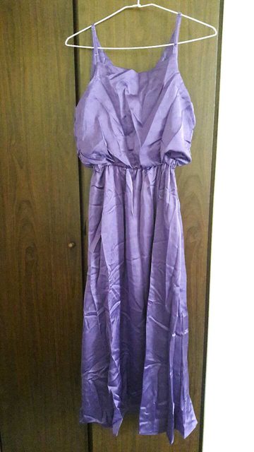 2.【全新】bebi海邊度假純色緞面吊帶高腰顯瘦連衣裙-紫色