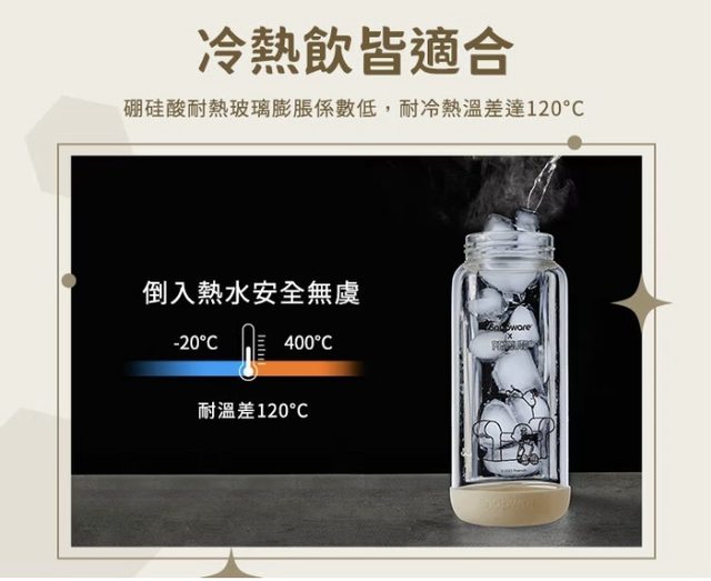 6.康寧SNOOPY復刻黑白提把隨行玻璃杯710ml