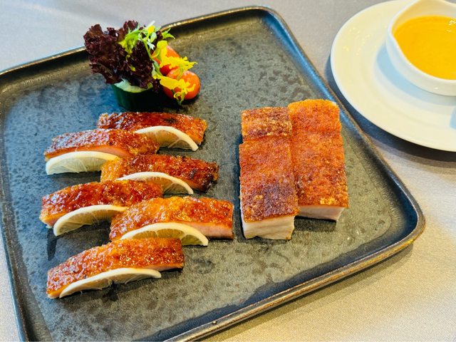 餐點除了粵式燒味、片皮烤鴨、烤乳豬與港式點心,還有潮州經典滷水鵝和特色海鮮手路