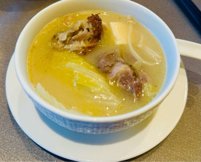 的鴨肉香,加入薑和酸菜增添了不同風味,喝完有種令人回味的黏嘴感。湯中的配料也很