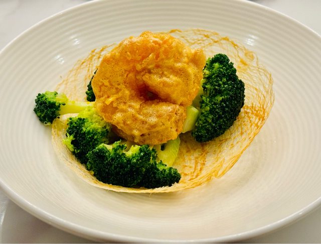 黃金明蝦球,香脆鹹蛋黃包裹著巨大明蝦球,蝦肉很Q彈新鮮,背上還留著薄薄蝦殼炸到