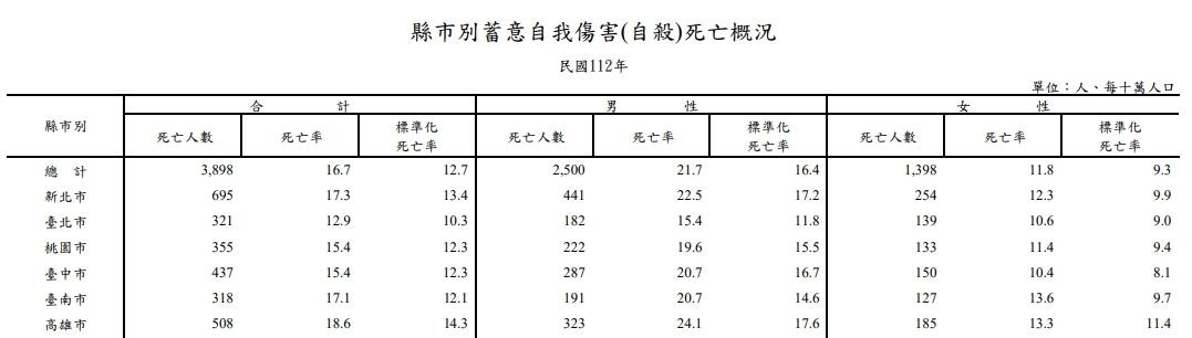→ eric850609: 啥統計邏輯?你先把所有縣市自殺數據223.138.174.125 03/24 10:44