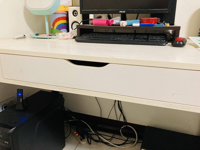 當初頭殼撞到買了兩張,但使用頻率極低,桌緣有一個小瑕疵、抽屜面有擦痕