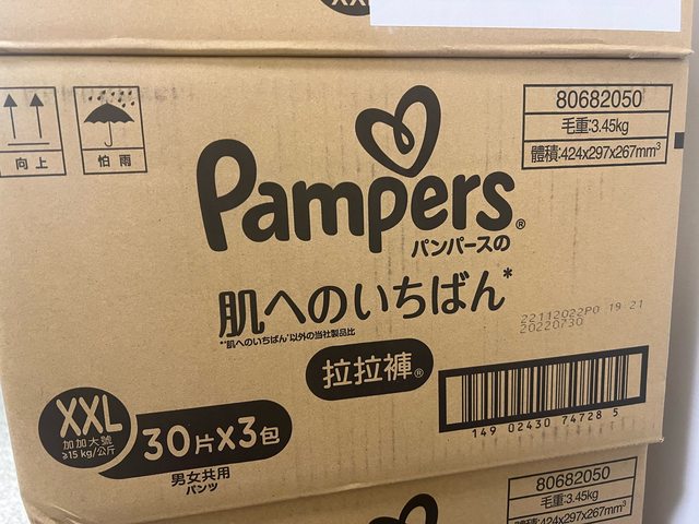 幫寶適拉拉褲XXL 90片/箱,共5箱