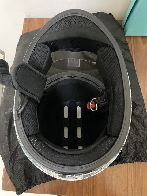 戴約5次,面罩有輕微刮傷但不影響使用,附防塵套