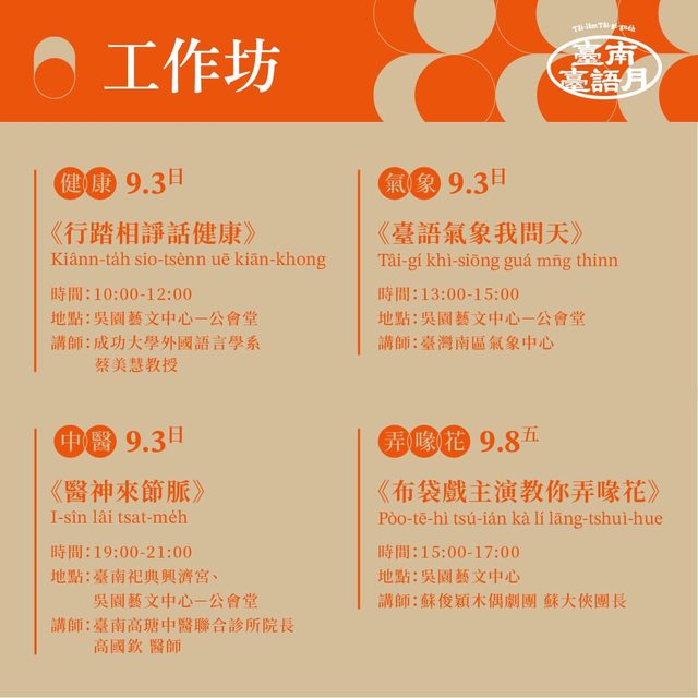 ▍臺語強度 : 全臺語發音,現場提供臺華對照講義。