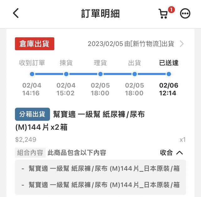 幫寶適 紙尿布(M) 144片 $1000/箱