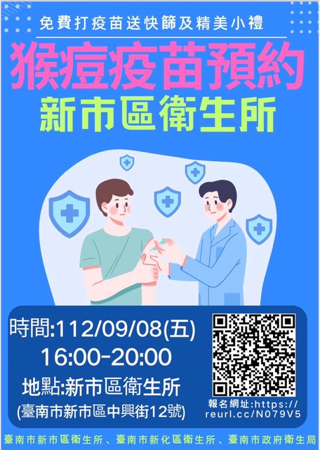標題台南市新市區 9/8 來打猴痘疫苗了