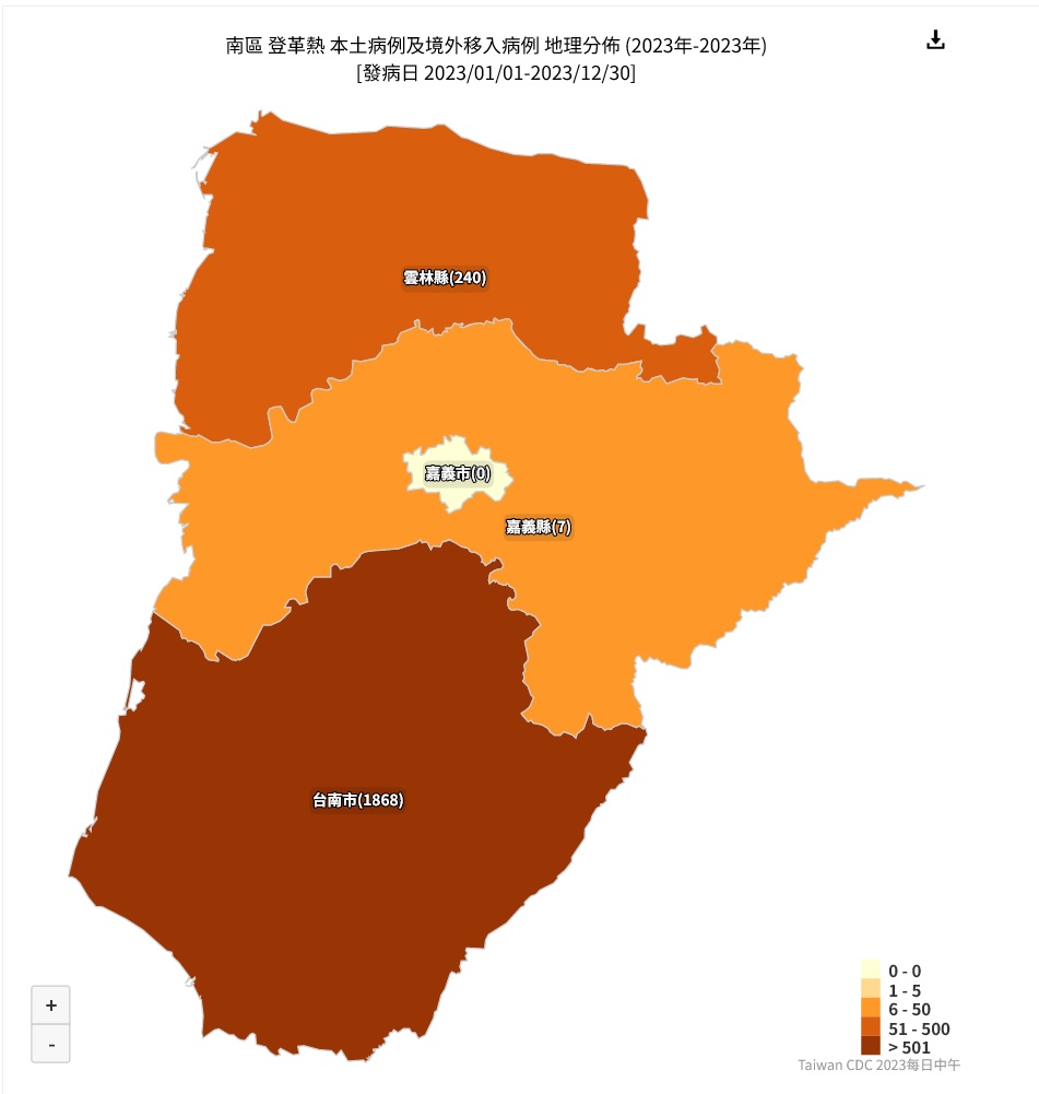 台南市已經有1961例,近日將突破2千大關。至於其他