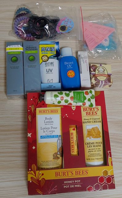2、過期髮油、護手霜、防曬乳…&電話線髮圈、防開門扣(皆全新未拆封未使用):新臺幣100元