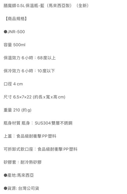 3:膳魔師彈蓋輕水瓶500ml(藍色、粉紅色)