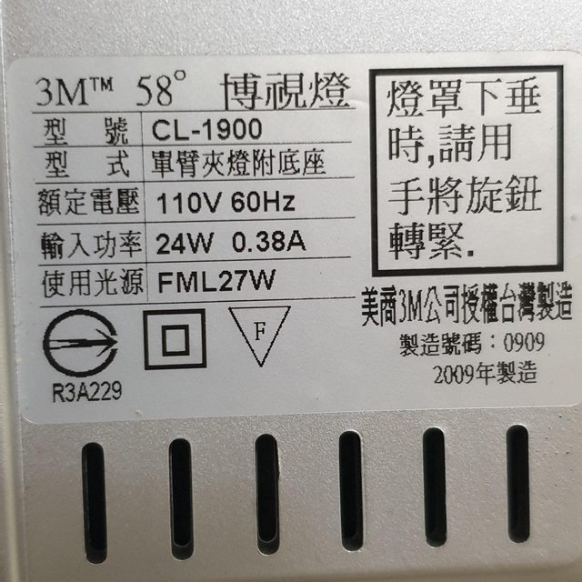 交易類別:出售 面交地點:北門路三段與長榮路路口 交易物品/金額/說明: <售出>1.3M 58度博視燈 CL-1900 座夾兩用型 冰霧銀 200元 ■2009/09製造,2010購入,買來後使用約2~3個月便收起來了,閒置多年,功能正常。 ■濾光片右下角有點摺到,不影響使用,便宜賣。