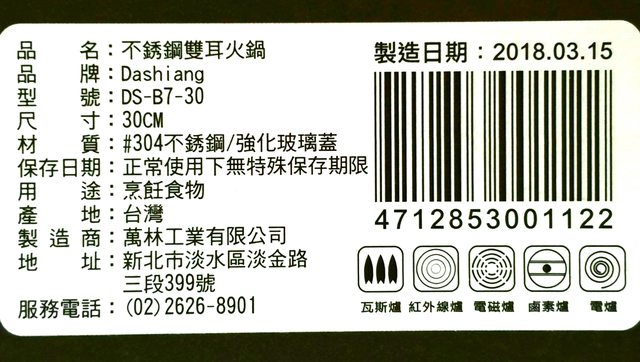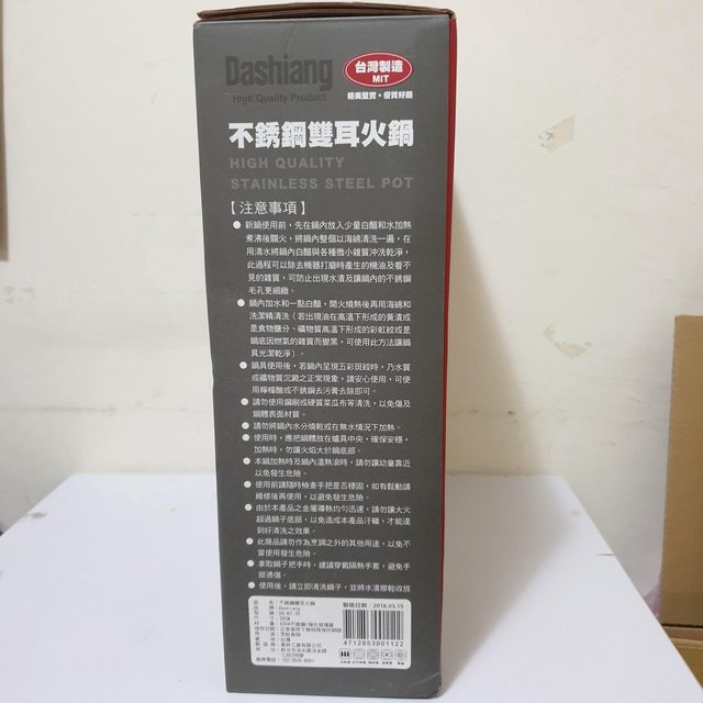 <洽中>6.Dashiang 大相 不鏽鋼30cm雙耳火鍋 200元 ■全新未使用,2018年餐飲工會會員禮,閒置多年,用不到便宜賣。製造日期:2018/3/1 5