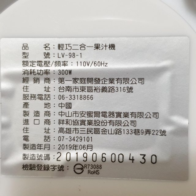 <洽中>3.輕巧二合一果汁機 隨身杯 一品夫人300元 ■全新!2019/9/20購入,閒置多年,原價1380,300元便宜賣。已測試功能正常。製造日 期:2019/06