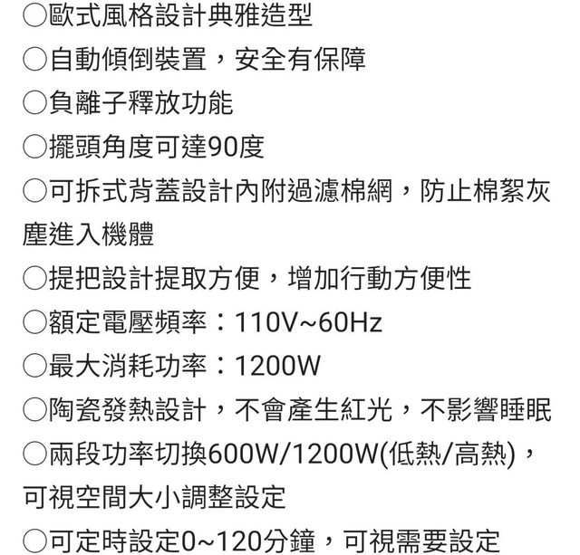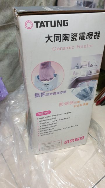 <洽中>4.大同陶瓷 電暖器 TSH-1277 暖氣機200元 ■2011年製造,機體外觀9成新,功能正常,外盒很陳舊。用了一個月左右就收起來,閒 置多年。 ■濾網為黑色的,非常乾淨像新的一樣。 ●製造日期:2011年 ●重量:約3.65KG ●尺寸:18*20*53(cm) ●產地:台灣