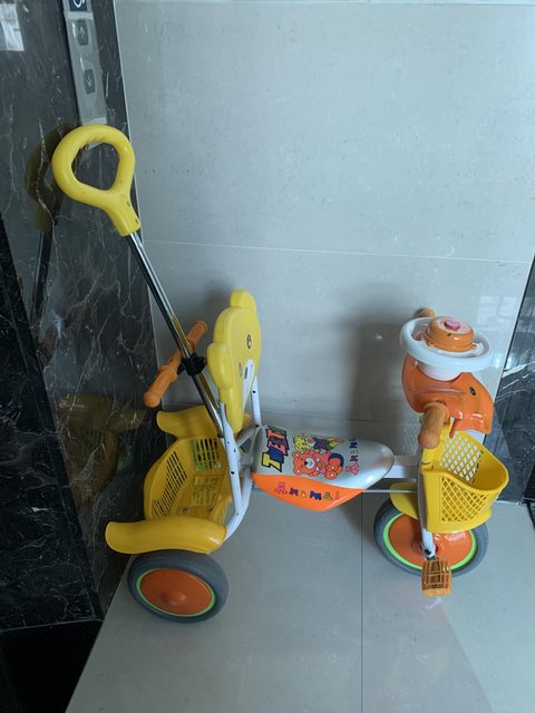 交易物品:二手幼兒三輪車,售100元。左踏板騎太快會掉,無法固定,幼童只能慢慢騎,