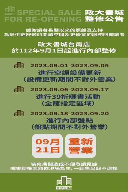 政大書城39折優惠活動(全館指定區域)