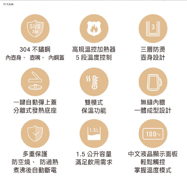 交易類別:出售 AIWA 愛華1.5L三層防燙5段式控溫電茶壼-香檳金(DKS1315)