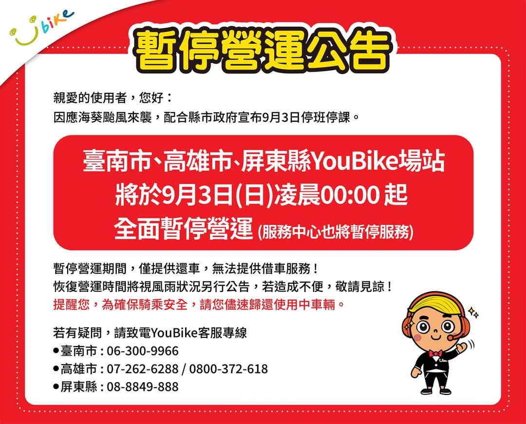 younging: 台北也是,停班課Ubike暫停服務 09/03 09:51