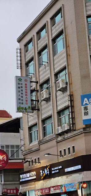 今天下午約兩點半經過茶的魔手台南大同二店,看到一座招牌被風吹壞,有可能砸落,正
