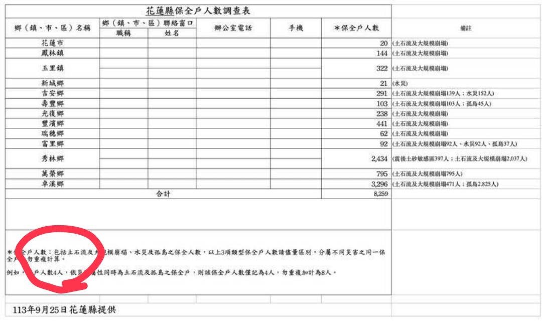 唯有1棵路樹傾倒且已移除完成;土石流警戒區之保全戶也已